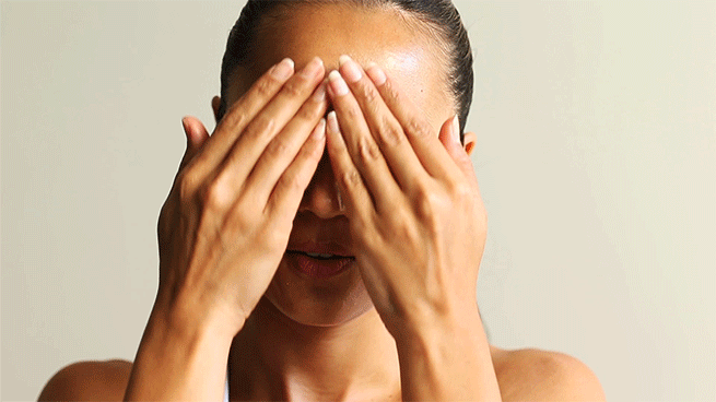 Для кожи век также нужен легкий массаж области вокруг глаз. Верхнее веко проходи от внутреннего угла к внешнему, а на нижнем – наоборот.