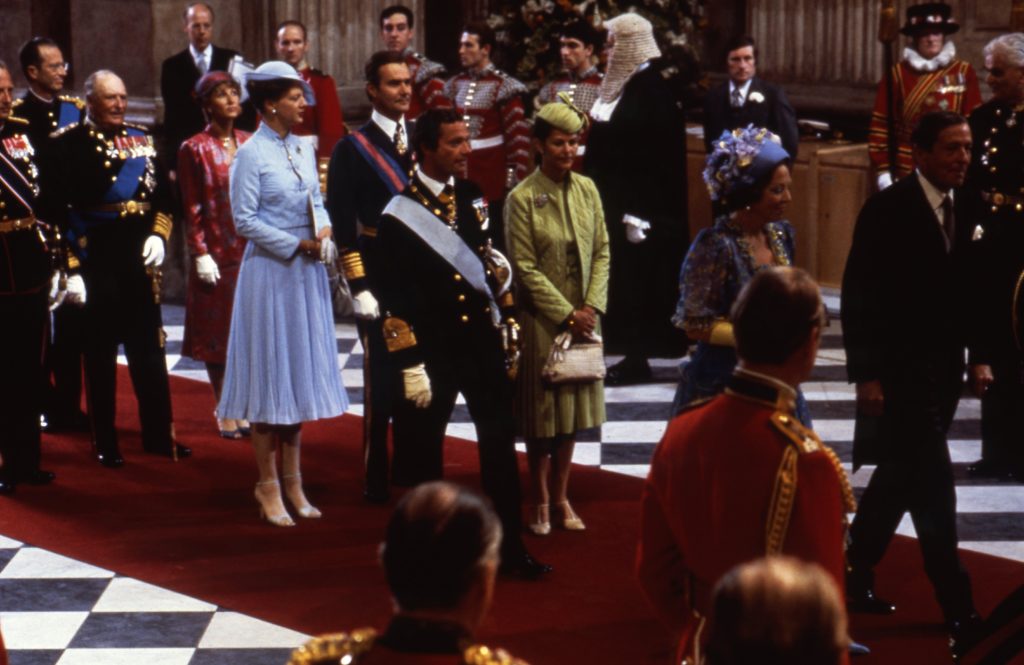 Ненси Рейган, жена бывшего президента США Рональда Рейгана, была в числе приглашенных (в центре в нежно-розовом костюме и шляпе). Фото: Central Press/Hulton Archive/Getty Images