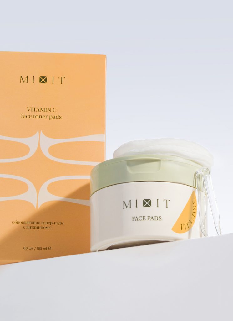 Этот продукт можно назвать лабораторией в банке, ведь MIXIT положили туда все для создания идеального уходового средства: мягкие пэды, дой-пак с активной сывороткой и стикер с названием актива. В итоге ты получаешь средство, которое не только выравнивает и улучшает тон кожи, но и повышает ее упругость и эластичность.
