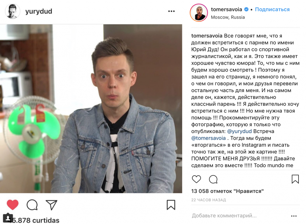Тебе он точно знаком как тот самый сумасшедший из видео «Россия аху**но, братан»! Этот парень просто снимал все свои приключения в России в Stories. Он подходил на улицах к прохожим и начинал болтать с ними на португальском, снимать пародии на клипы русских исполнителей (лучше всего вышло с Джиганом), знакомился с девушками на улицах, да и просто отдыхал на полную катушку. И в один день проснулся знаменитым! Всего за месяц у него набралось почти 400 тысяч подписчиков в Instagram: теперь Томера узнают на улицах и просят сделать селфи.