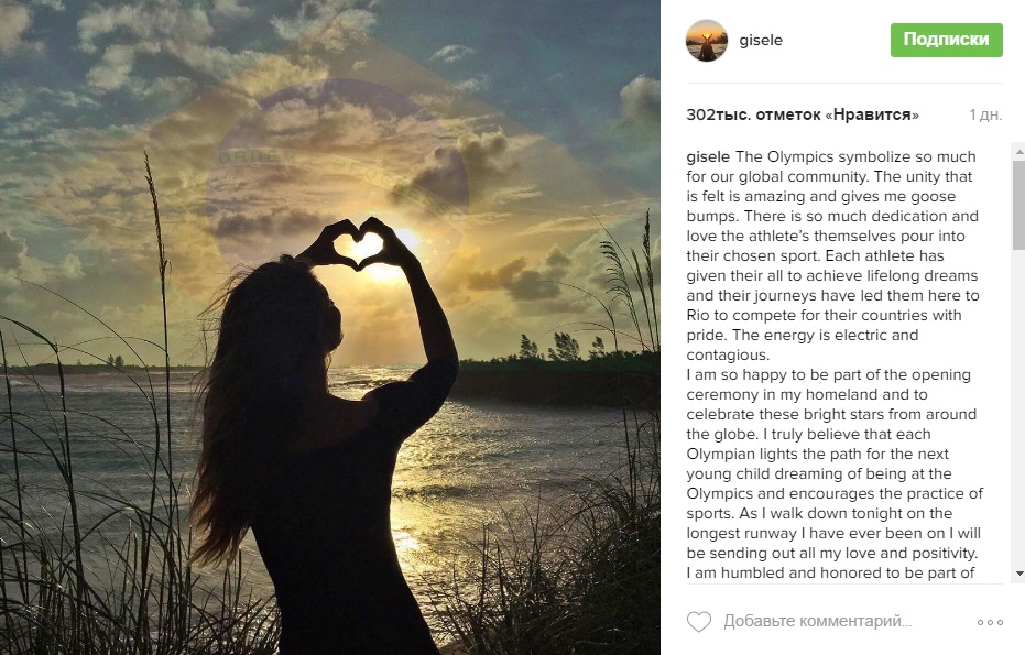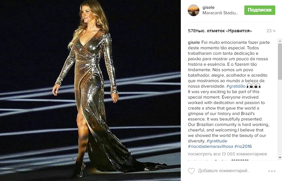 Для бразильской супермодели Жизель Бундхен (36) эти Олимпийские Игры стали особенным событием. Возможно, даже одним из главных. На церемонии открытия состоялся ее последний выход на подиум, самый длинный подиум в жизни Жизель.