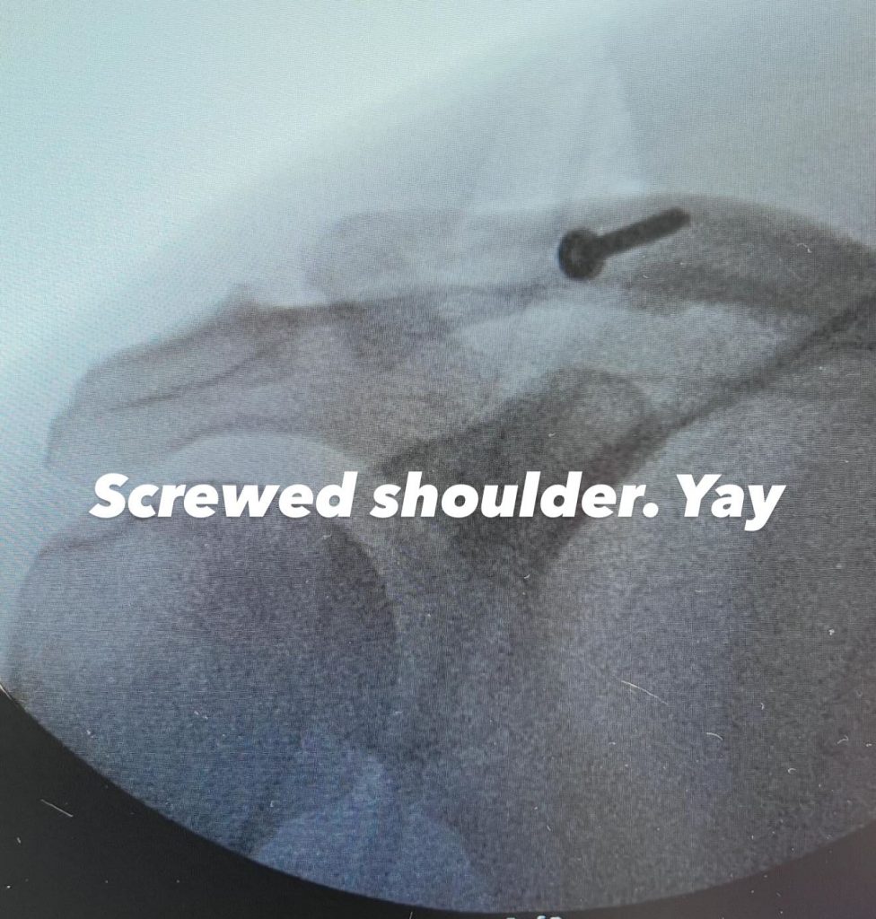 Попал под наблюдение врачей актер из-за отрыва акромиона. Это травма, возникающая при разрыве или растяжении связок в месте соединения ключицы с лопаткой. Так актер показал рентгеновские снимки. На одном видно повреждение, а именно разрыв плечевого сустава, а на другом виднеется уже вмонтированный винт для стабилизации сустава.