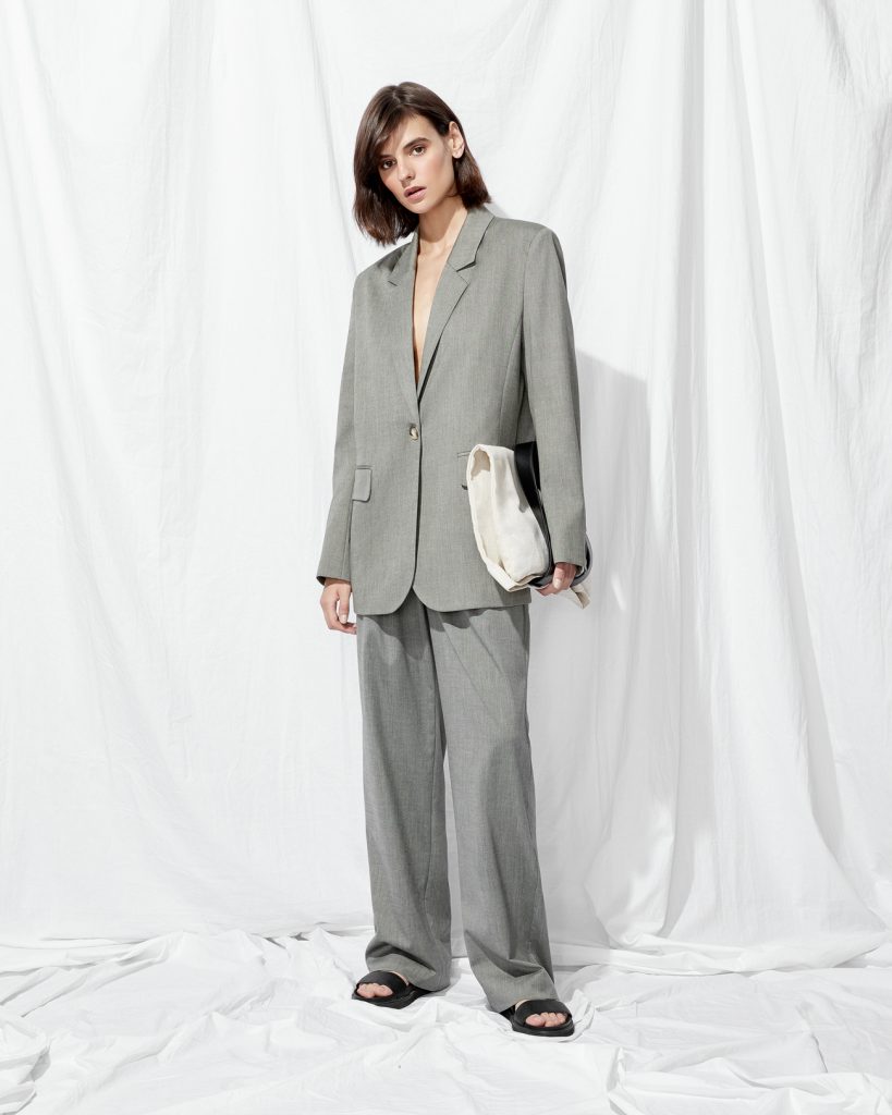 На что обратить внимание: мы советуем выбрать оверсайз свитер в голубом оттенке, дутый шоппер и объемную куртку.