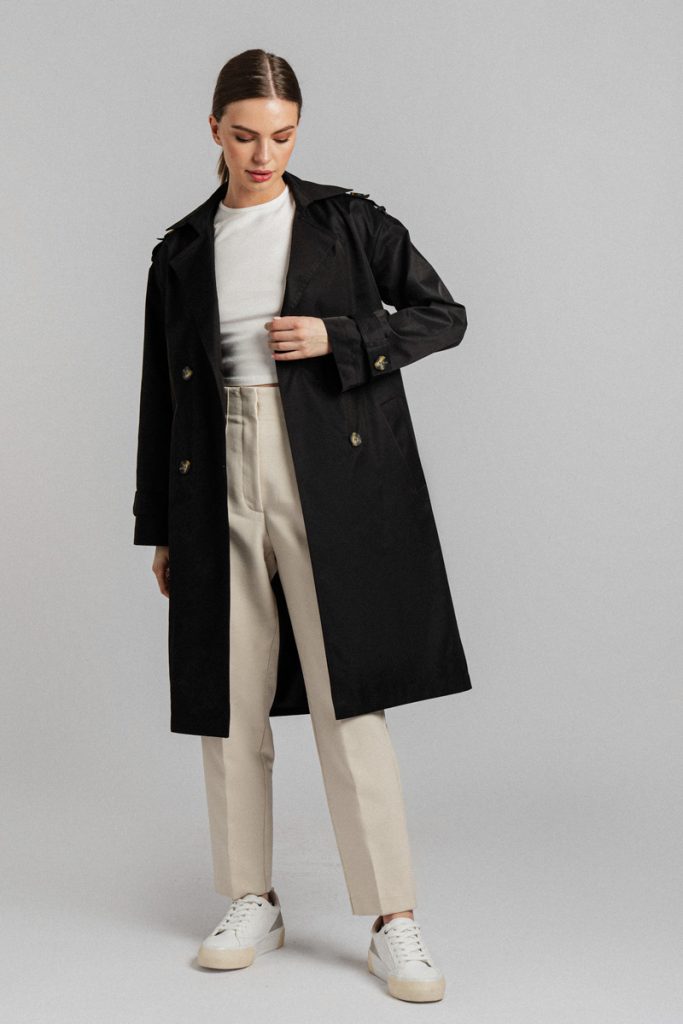 Черный тренч, белая футболка и синие джинсы – идеальный образ Кэролин Биссет-Кеннеди из 90-х, который стоит повторить этой осенью