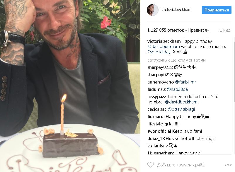 За четой Бекхэмов уже 19 лет следит весь мир. И все 19 лет пара известного футболиста и бывшей солистки Spice Girls считается не только самой красивой, но и очень романтичной. Они часто публикуют семейные снимки с трогательными подписями и признаниями в любви. Кроме того, Дэвид (42) радует свою жену и детей дорогими подарками.