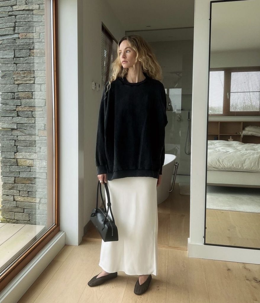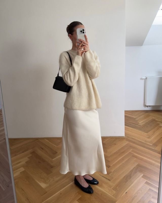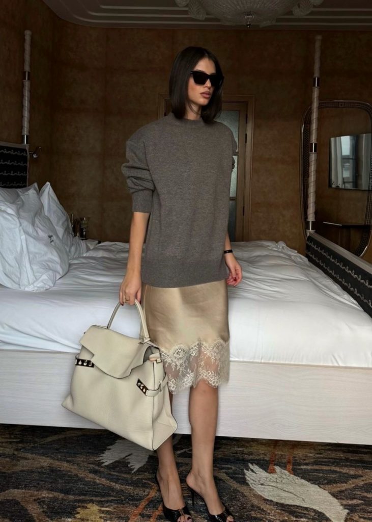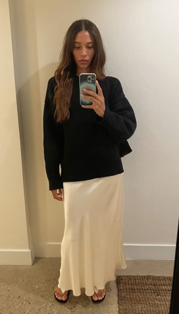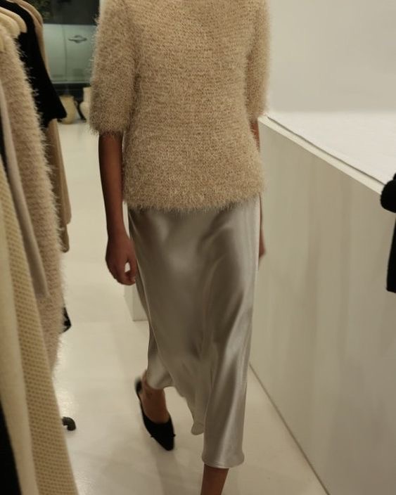 Что надеть, если не успела купить новогоднее платье? Фэшн-инфлюенсеры голосуют за шелковую юбку и свитер
