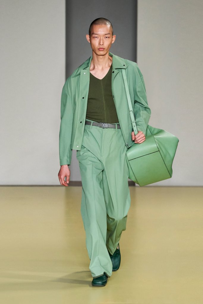 В новом сезоне вдохновляйся показами Jacquemus и Salvatore Ferragamo и выбирай брючные костюмы оверсайз. И не забывай, что на смену классическому черному и серому пришли яркие цвета: от насыщенного красного до зеленого (так что не бойся экспериментировать с палитрой).