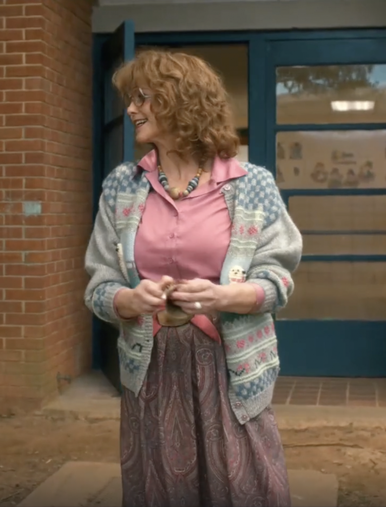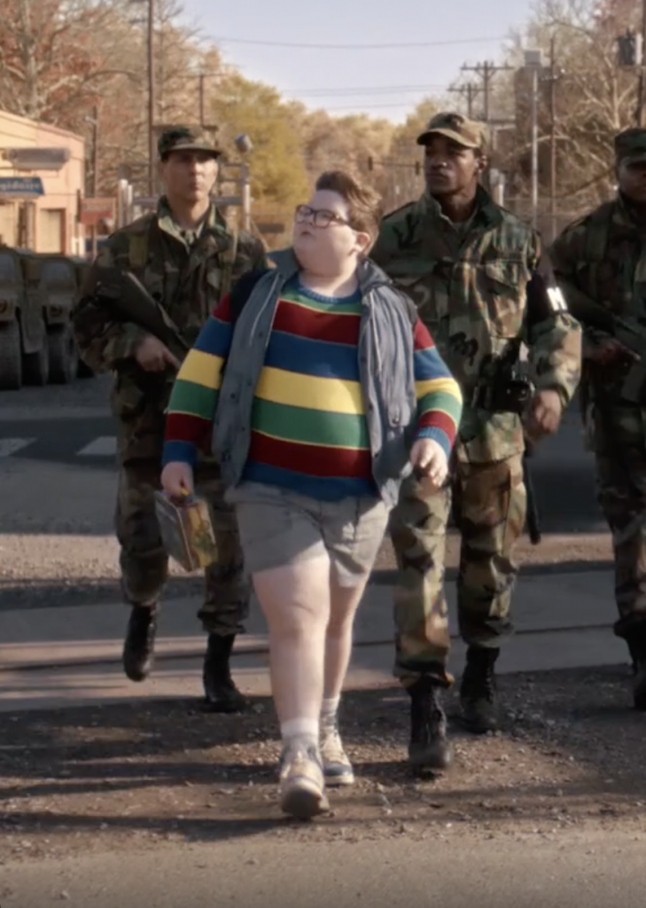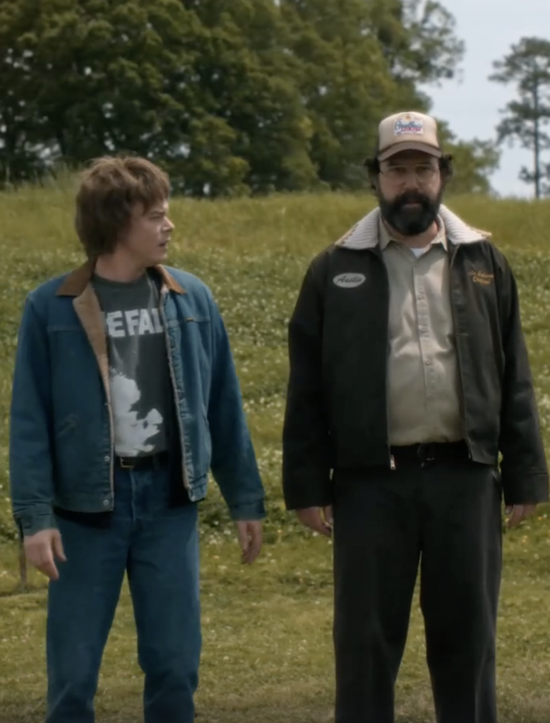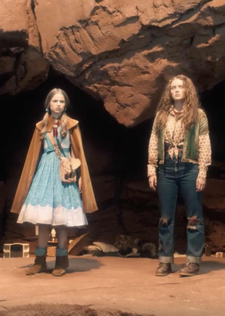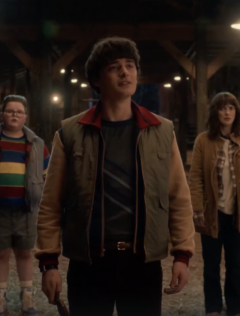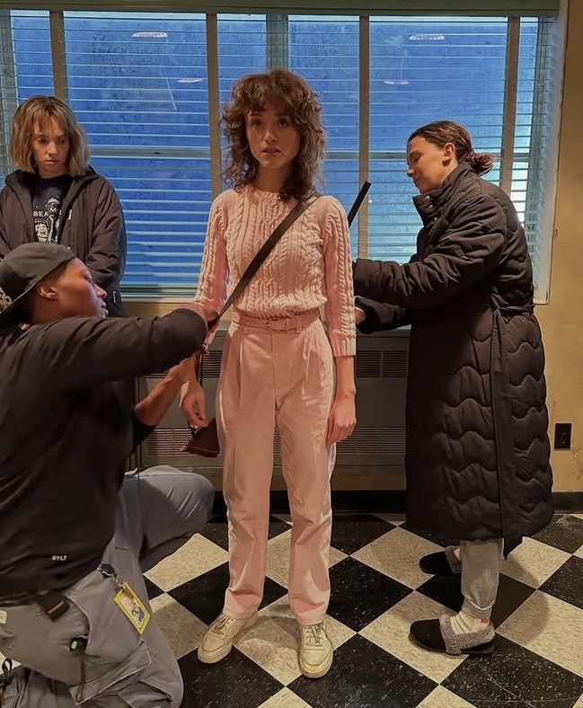 Пятый сезон «Очень странных дел» стилизовала Лотта Волкова? Иначе как объяснить то, что образы персонажей выглядят как логичное продолжение последних показов Miu Miu, а сами герои будто и есть те самые не идеальные модели бренда. Фартуки, многослойность, нарочито небрежные детали – от растрепанных укладок до свитеров, заправленных в джинсы, – все это Miu Miu активно продает нам уже не первый сезон.
