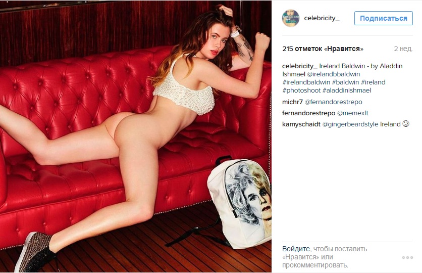 Очередной откровенный снимок Болдуин в Instagram поверг ее подписчиков в шок. На фото, сделанном фотографом Аладдином Исмаэлем, Айрленд лежит на откровенно пошлом красном кожаном диване в топе и кедах, но без нижнего белья. Поклонников возмутило то, что эти снимки (в отличие других «ню»-фотографий Болдуин) были эстетически не красивыми и вызывали отвращение. Говорят, кстати, что Алек рвал и метал. Несложно представить, учитывая его взрывной характер. В итоге Айрленд удалила фото со своей странички, но теперь оно гуляет по Сети.