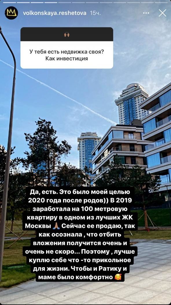 После расставания с Тимати (37) Анастасия Решетова (24) все чаще стала делиться с поклонниками подробностями своей жизни. Так, например, не так давно стало известно, что инициатором разрыва была именно она, позже модель призналась, что рэпер оставил им с сыном квартиру, а теперь Настя рассказала, что продает недвижимость. Поклонники экс-возлюбленной Тимати поинтересовались, есть ли у Решетовой «своя недвижка?» Настя ответила: «Да, есть. Это было моей целью 2020 года после родов)) В 2019 заработала на 100 метровую квартиру в одном из лучших ЖК Москвы (орфография и пунктуация автора сохр.- прим. ред.)».