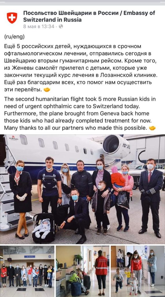 Жан-Клод оплатил для детей два частных борта: они уже успешно приземлились в Швейцарии. «Я рад, что этот спецрейс состоялся в то время, когда нет ни одного регулярного рейса из России в Швейцарию. Это дало возможность детям из России приехать для прохождения срочного медицинского лечения», — заявил швейцарский посол при женевской Конференции по разоружению Феликс Бауманн, (его слова приводит ТАСС).