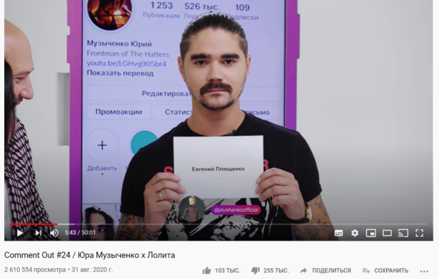 За неделю выпуск набрал больше 2,6 миллионов просмотров (103 тысячи лайков против 255 тысяч дизлайков), а в комментариях творится настоящий ад. Пользователи возмущаются неуместными и грубыми шутками в шоу, которые, по их мнению, оскорбляют чувства белорусов и всех «трезвомыслящих людей», затрагивают темы патриотизма и родины. А вот реакцией гостей восхищаются: Юрий Музыченко отказался писать компрометирующие комментарии и выполнять задания, которые хоть как-то связаны с протестами «братского народа». Для примера: музыканту предложили написать комментарий под последним постом Евгения Плющенко (его имя вытащили рандомно из заранее подготовленных карточек): «Лови загадку! Кому вообще пришло в голову сделать такой протестный флаг Беларуси? Ответ: Тихановской, когда она увидела след от месячных на прокладке!» Юрий отказался от задания, взамен ему предложили написать опубликовать пост у себя в Instagram: «Отличай писюн от пальца! Хабаровск — не Беларусь! Никаких концертов там! Грязный городишко, который заступается за убийцу! Вангую, новый банный князь умоет это быдло».