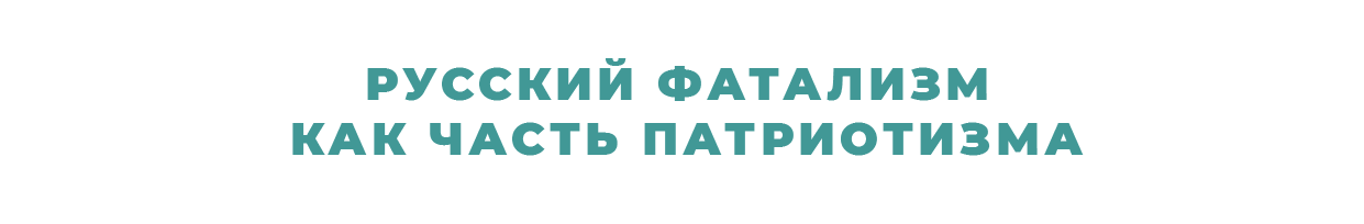 Да, стереотип об особом русском характере формировался десятилетиями (если не веками) и как «антикризисная мера» работает, пожалуй, до сих пор, но вопрос о его реальном существовании, кажется, уходит, скорее, в область философии. Исторический бэкграунд, религия, даже сказки и семейные традиции оправдывают русский фатализм, но перестают иметь смысл при банальном недостатке образования, и на каждую причину, почему национальный характер действительно имеет место быть, находится причина, почему это может быть и не так. Его рассматривают как политический инструмент, как следствие глубокой религиозности, как пережиток Великой Отечественной войны. И пока необходимость в нем продолжает жить и появляться при каждом кризисе, разговоры о нем не утихнут. К лучшему ли это? Покажет время.
