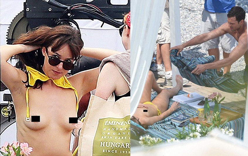 Дакота не стесняется ходить топлес перед Джейми и съемочной группой