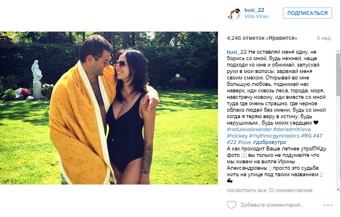 Об этом спортсменка поведала поклонникам на станичке в Instagram, оставив весьма скрытную запись:«Еще один значимый день в моей жизни отправляется в копилку! Мой мужчина, моя стена и опора, моя любовь. И Мы СЧАСТЛИВЫ». Однако поклонники Дарьи быстро поняли, что речь идет именно о свадьбе, которая состоялась 29 июля.
