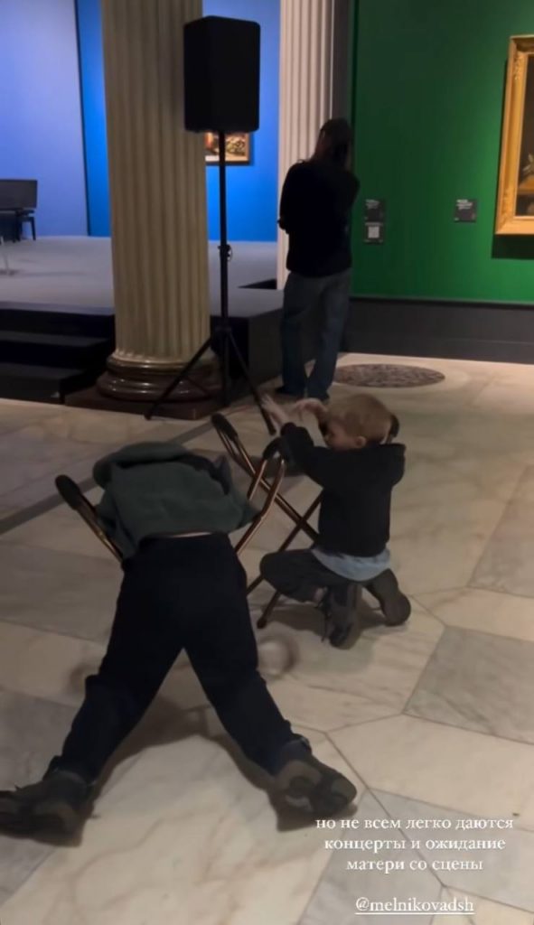В другом Stories звезда театра и кино опубликовала его фото, написав: «Человек, который не даст мне зазнаться». Также кто-то из зрителей заснял детей Мельниковой от прошлого брака — девятилетнего Артура и шестилетнего Марка. «Но не всем легко даются концерты и ожидание матери со сцены», — был подписан кадр.