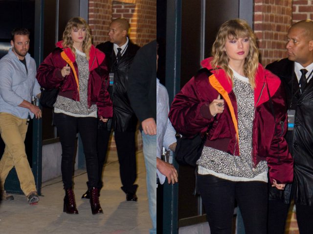 Тейлор Свифт (27) давно не появлялась на публике. Но недавно папарацци сфотографировали певицу в Нью-Йорке. Тейлор оделась по-зимнему: джинсы, свитшот Amiri и куртка.