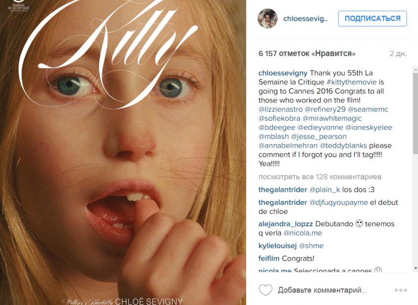 Как стало известно, короткометражку Хлои покажут на закрытии «Недели критиков» Каннского кинофестиваля, которая пройдет в середине будущего мая. К сожалению, создатели пока не опубликовали трейлер «Китти», однако в своем Instagram актриса разместила первый постер к фильму, поблагодарив в подписи к нему всех, кто работал вместе с ней над лентой.