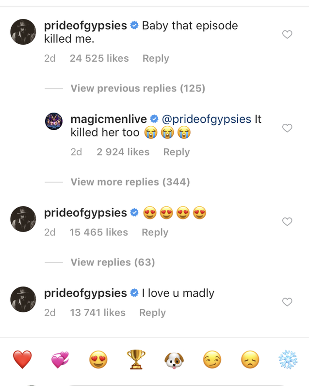 А после выхода финального эпизода Джейсон снова признался актриса в любви. На этот раз в Instagram! «Детка, этот эпизод убил и меня тоже» , — написал он в первом комментарии. Затем добавил: «Я безумно люблю тебя». Очень трогательно!