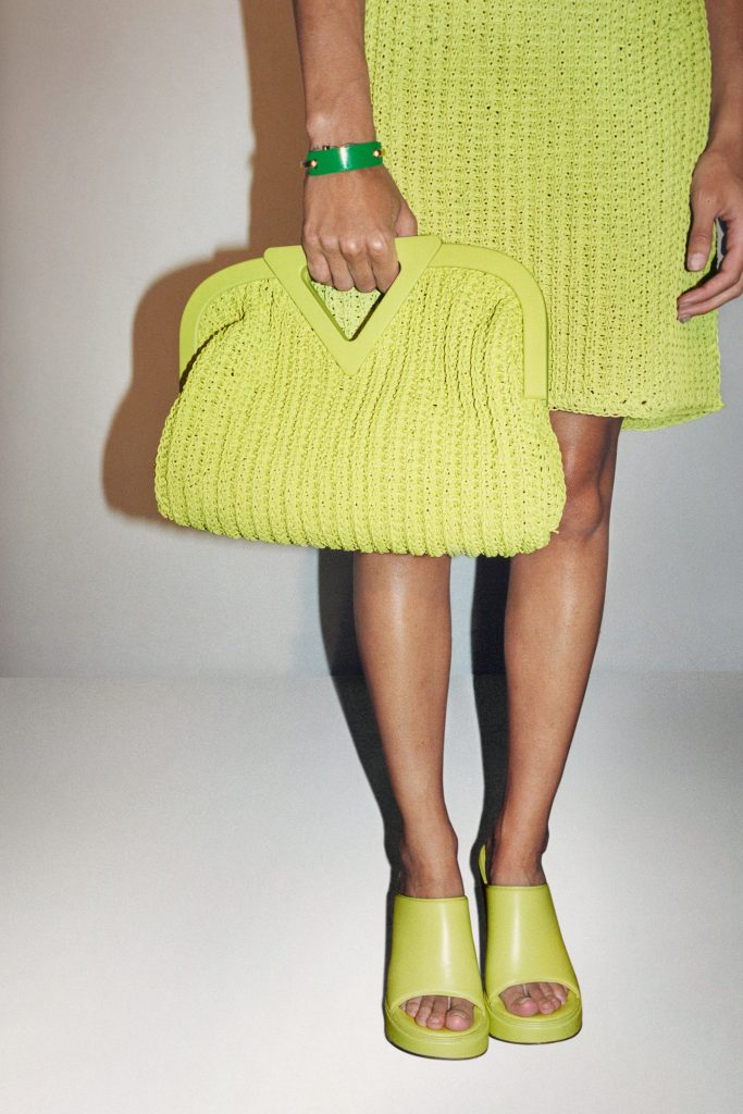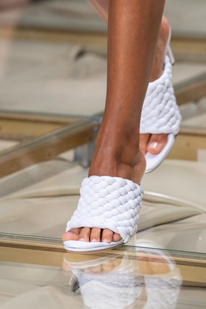 Чтобы создать следующую it-вещь, Дэниел Ли в коллекции SS 20 решил соединить сразу два тренда: мюли, которые успели стать самой популярной обувью последних сезонов, и плетение — любимый прием модного Дома. Получилась очередная красивая пара с дутыми ремешками в небесно-голубом, белом, лимонном и темно-зеленом цветах.