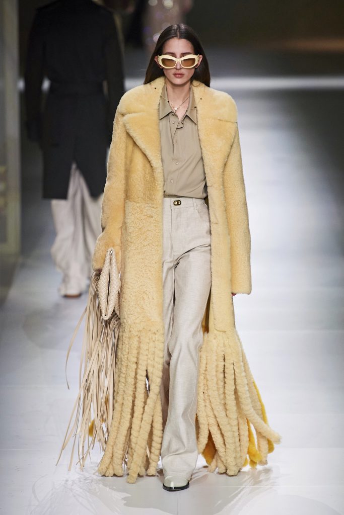 Желтая шуба с бахромой