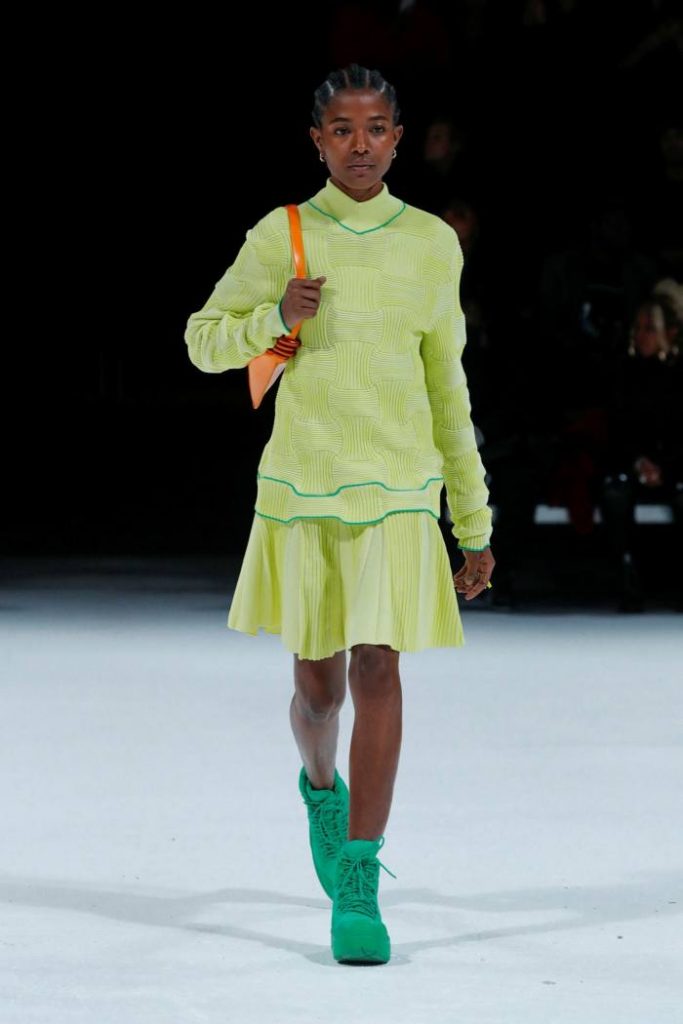 Вообще с приходом Дэниела Ли сумки и обувь Bottega Veneta снова стали самыми желанными аксессуарами на модной арене. Дизайнер подарил новую жизнь знаковым моделям из архивных коллекций бренда, сохранив, но укрупнив технику плетения. Он снова ввел в моду квадратный мыс, и да, именно благодаря Дэниелу мы все влюбились в насыщенно-зеленый цвет.