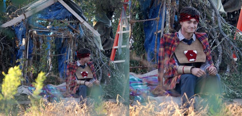Папарацци удалось сфотографировать Дэниела, когда тот был на съемочной площадке нового фильма «Swiss Army Man». Выглядел он весьма странно. Актер появился перед камерами в старомодных широких брюках, клетчатой рубашке, галстуке и пиджаке, поверх которого была надета картонная броня со значком супергероя. Взлохмаченную голову парня в этот момент украшала повязка, вырезанная из красной ткани.