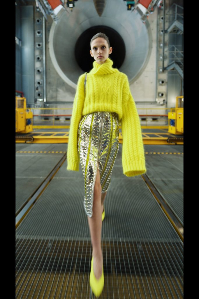 Для тех, кто не снимал кроп-топы летом, дизайнеры придумали теплую альтернативу и выпустили укороченные свитера с широким воротником. Самые интересные модели получились у Balmain: Оливье Рустен выпустил модели в кислотно-желтом и ярко-розовом цветах.