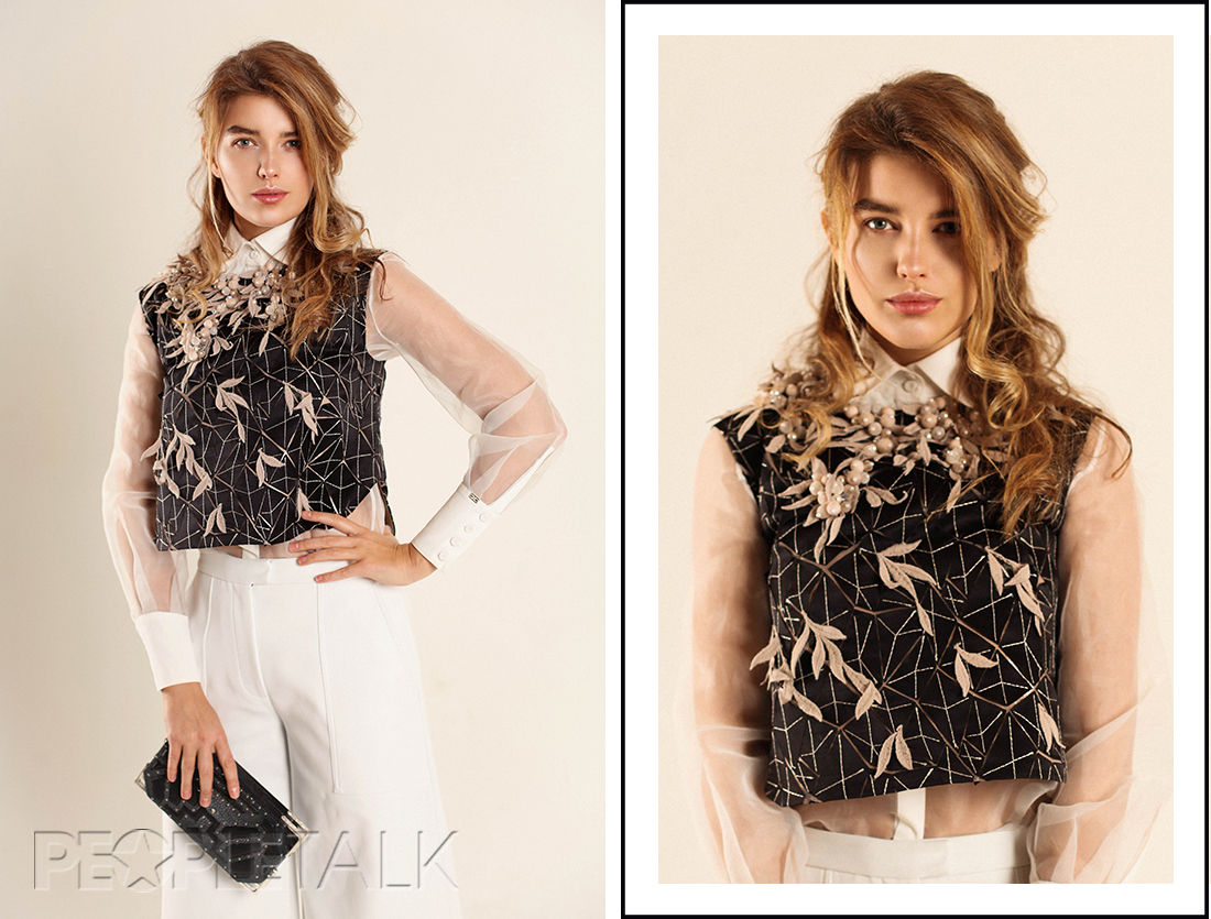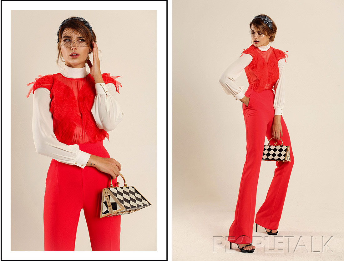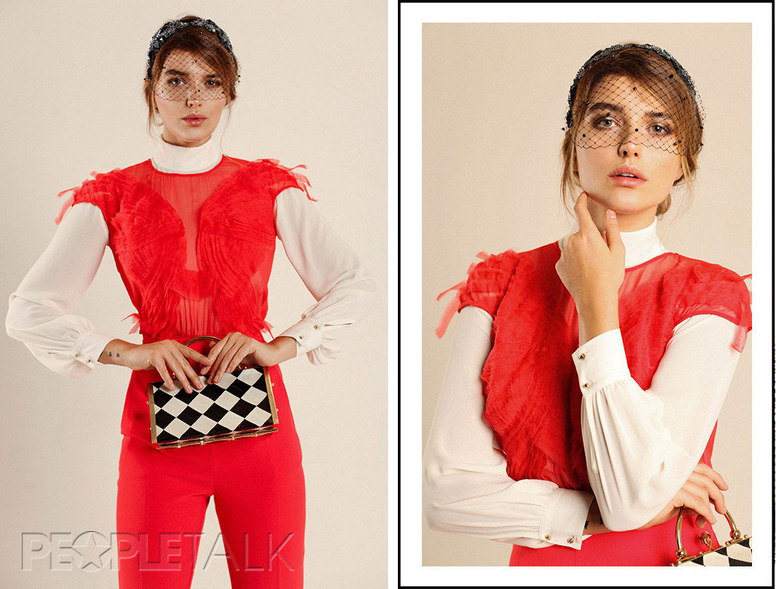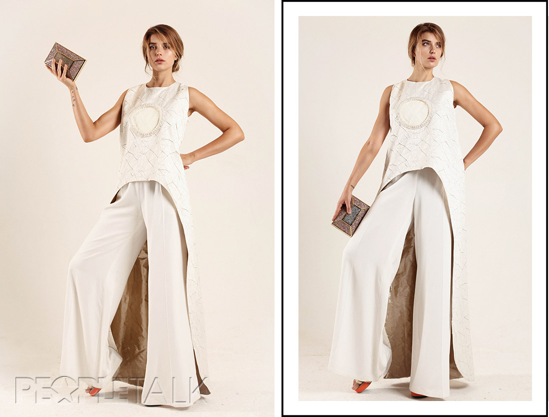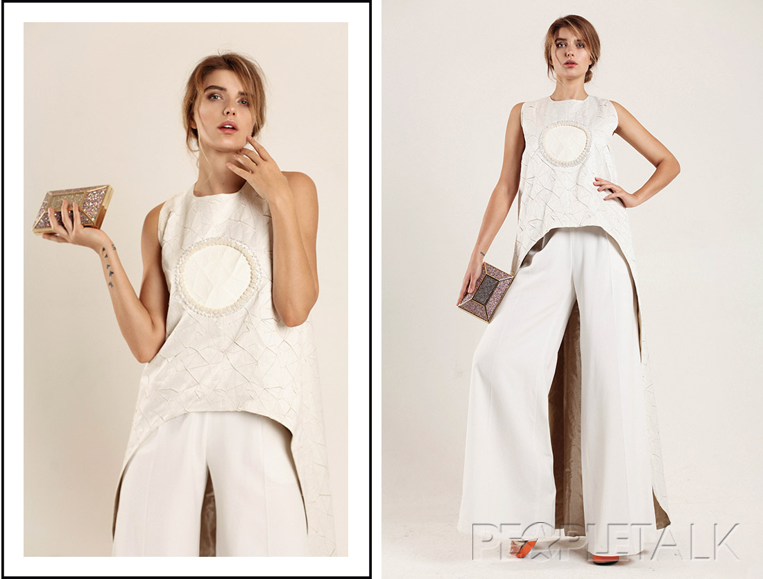 Топ, AkaNanita; брюки, Elisabetta Franchi; клатч и босоножки, Ballin;