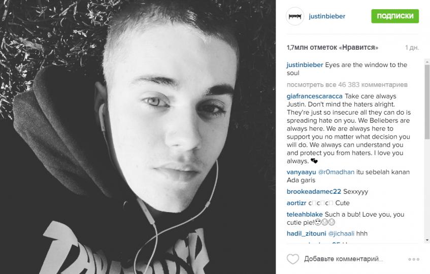 Об этом певец сообщил через свой Instagram, опубликовав запись, в которой объясняет, почему принял такое решение. «Если вы встретите меня где-нибудь, то знайте, что я не буду фотографироваться с вами, — сухо написал Джастин. — Все дошло до такой степени, что люди даже не стараются сказать мне «привет» и не видят во мне человека».