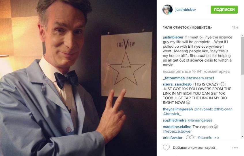 Об одном из них певец и рассказал своим поклонникам через Instagram. Оказывается, Джастин мечтает о встрече с телеведущим Биллом Найем (60). «Если я встречу Билла Найа из шоу Bill Nye the Science Guy, то моя жизнь станет полной, — написал певец под снимком телеведущего. — Я бы хотел побывать с ним везде, где я уже был. Встречать людей и говорить: «Эй, это мой приятель Билл!» Спасибо тебе, Билл, за то, что сделал научные фильмы, которые мы так любили в школе».