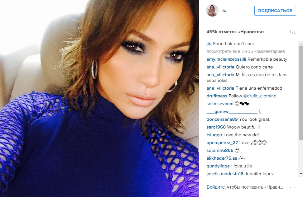 На днях Дженнифер опубликовала в своем Instagram новое фото, на котором она запечатлена с еще более короткими волосами. В этот раз звезде приглянулась прическа, которая едва закрывает ее шею. «Короткие волосы – не волнует», – написала певица.