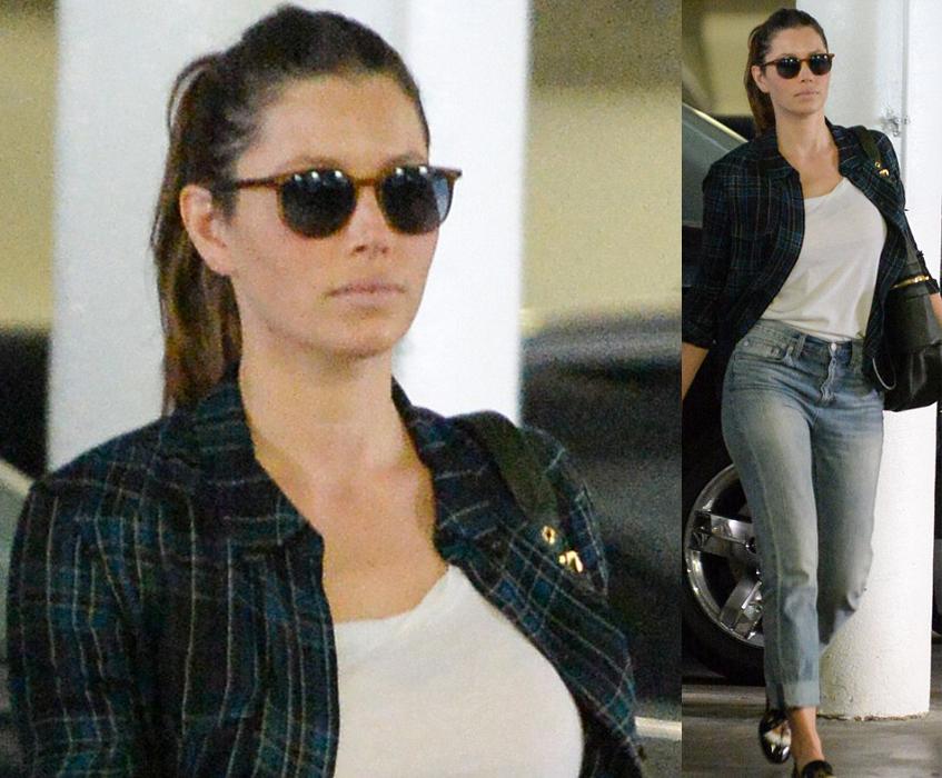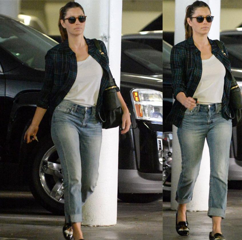 4 октября звезда занималась своими делами в Санта-Монике. Конечно, она решила надеть далеко не вечернее платье. Актриса выбрала самую простую одежду: потертые джинсы с высокой талией и подвернутыми штанинами, белую майку, клетчатую рубашку и черные лаковые балетки. Но даже в этом простом наряде Джессика выглядела просто сногсшибательно!