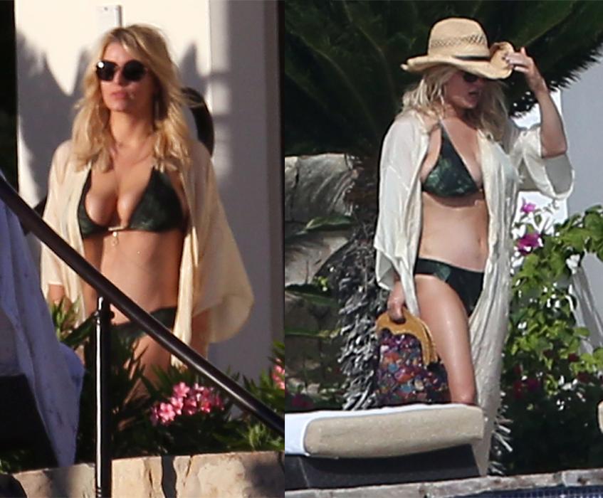 17 января папарацци застали Джессику в Мексике, где она отдыхала у бассейна в компании своего супруга Эрика Джонсона (36), сестры Эшли (31) и ее мужа Эвана Росса (31). Певица вышла позагорать в компании родных в темно-зеленом бикини, которое прекрасно подчеркивало ее формы.