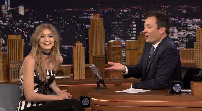 На днях модель Джиджи Хадид (21) стала гостьей шоу Джимми Фелона (41) Tonight Show, на котором она рассказала о прошедшем дне рождения, о своем парне Зейне Малике (23) и поиграла в веселую игру «Коронная фраза».