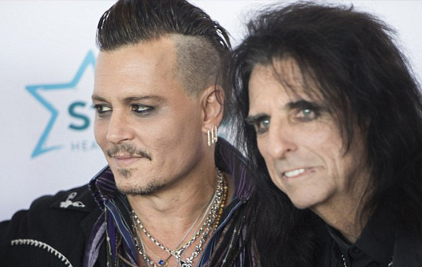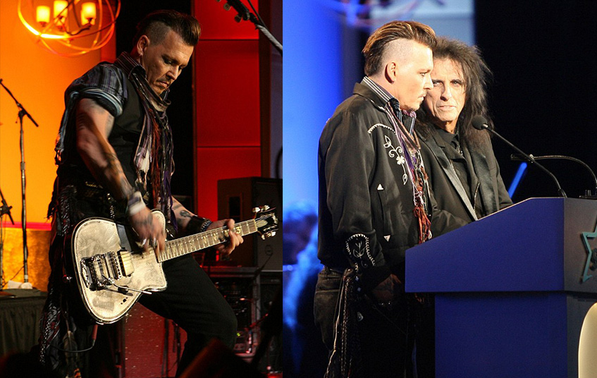 На этот раз Джонни при полном параде (подеведенные черным глаза, ирокез, куча цепей на шее) появился на благотворительном вечере фонда Starkey Hearing рокера Элиса Купера (68), который помогает людям с проблемами слуха.