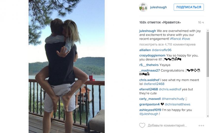 Об этом Джулианна рассказала на своей страничке в Instagram, опубликовав трогательную фотографию с будущим супругом. «Мы безумно рады, что можем рассказать вам о нашей недавней помолвке!» — написала танцовщица.