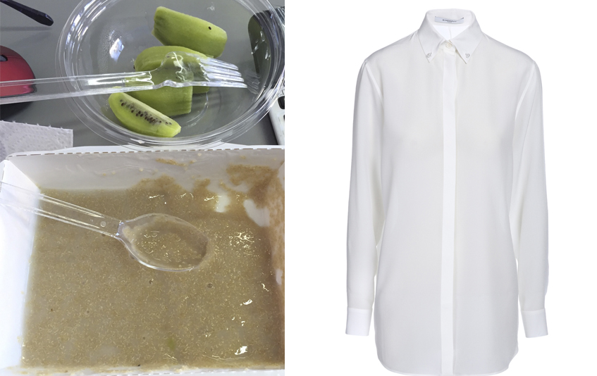 В 8:00 я начала завтракать, и первое, что я достала из чудо-сумки, была каша. Я не помню, когда в последний раз ела кашу. Так вот, это был амарант с кедровыми орехами на миндальном молоке. Запила я эту кашу зеленым соком из шпината и яблок со свежим огурцом и лимонным фрешем. Не могу поверить, что я все это съела. Раньше я предпочитала на завтрак кофе с аппетитным тортом. Больше всего меня порадовал киви, ведь с ним я была хорошо знакома, а вот с амарантом у меня явный конфликт.