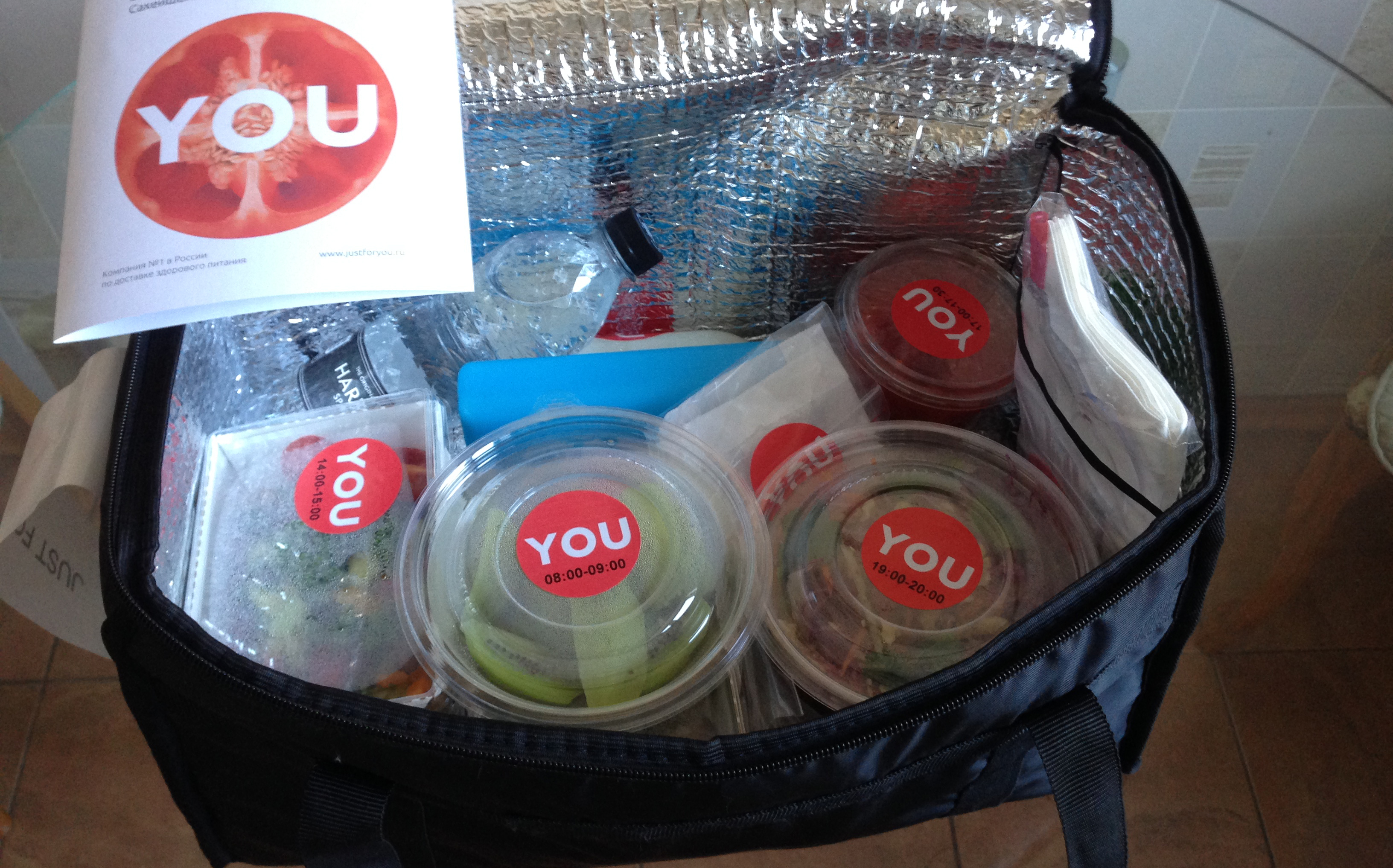В 7:32 меня разбудил звонок домофона, я побежала открывать дверь, подняла трубку и услышала слова, которые вмиг подняли мне настроение: «Доброе утро, это Just For You». Когда ко мне домой зашел курьер и с улыбкой передал мне огромную сумку, я была уверена, что это рацион на неделю. Оказалось – на один день. Серьезно? Все худые люди так много едят? Может, я поправилась, потому что недоедала?