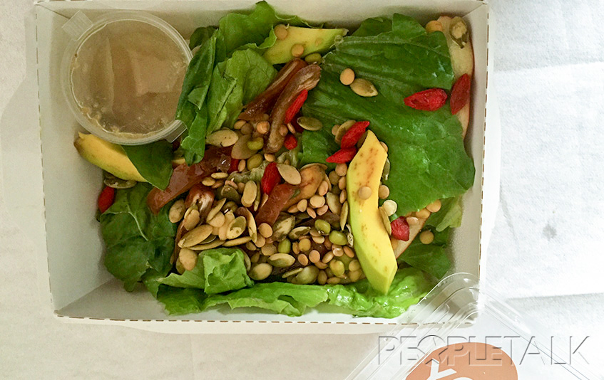 В 16:00 на обед я съела вкуснейший микс-салат с авокадо, проростками подсолнуха и семенами конопли, а также гигантские креветки на гриле. Очень мне понравился сегодня обед. А на полдник я полакомилась миксом дегидрированных фруктов.