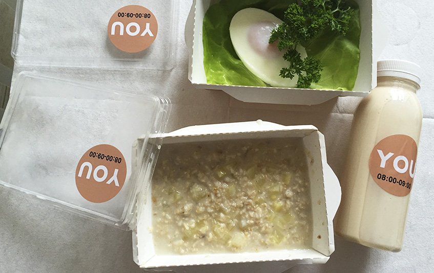 В 7:30 я распахнула двери для приема моего рациона на весь день от Just For You. Мы с очаровательным курьером обменялись сумками: он мне передал наполненную едой, а я ему пустую, но с улыбкой. Я сразу отправилась на кухню, положила сумку на стол и пошла будить своего верного друга.