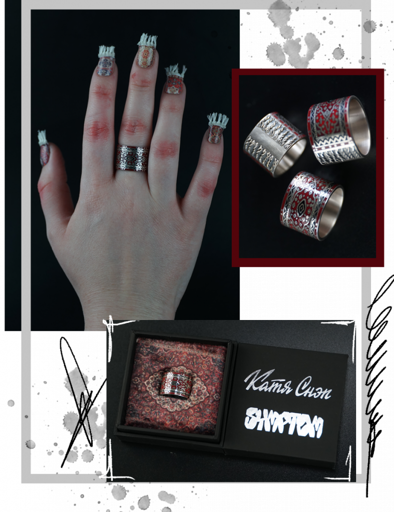В коллекции всего два объекта. Кольцо-ковер с перегородчатой горячей эмалью воспроизводит сложный, почти медитативный узор, знакомый каждому, кто рос в «панельках». Подвеска-трубочка – тот же мотив, но в более сдержанной версии: свернутый «ковер» без эмали, с деликатным чернением и акцентом на рельеф. Все изделия выполнены вручную и выпущены ограниченным тиражом. Это не про прямую цитату прошлого, а про ощущение – материальную память, тепло и чувство устойчивости, которое хочется носить с собой. Продажи стартуют 19 января.