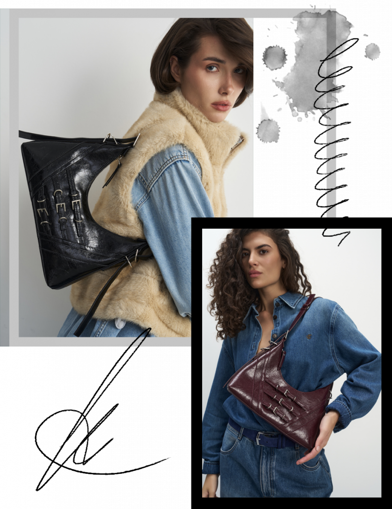 У модели иконичная форма, короткий регулируемый ремень для носки на плече и хромированная фурнитура с эффектом «только со съемки». Внутри – ровно столько места, сколько нужно для телефона и блеска. Сумка представлена в оттенках кристальный черный, бордовый глянец и зеркальное серебро и органично вписывается в эстетику y2k revival, когда мода снова позволяет себе быть яркой, игривой и чуть вызывающей.