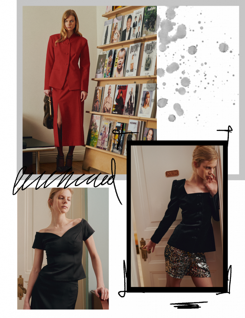 Emka открывает праздничный сезон коллекцией, в которой главная идея – спокойная, современная праздничность. Без мишуры, но с точными акцентами, которые работают и в новогоднюю ночь, и в обычный зимний день. В капсулу вошли джинсы с пайетками, структурный жаккардовый жакет, черный жакет со съемной рюшей, платье из жаккардового шифона с бантом и накидка из эко-меха. Вещи строятся на фактурах: вискоза, бархат, атлас, шифон, плотные костюмные ткани и органза создают мягкую, «зимнюю» палитру образов.