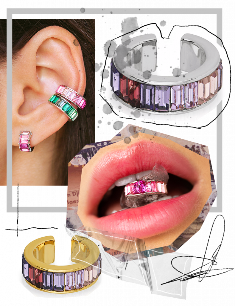 Осень у многих ассоциируется с приглушенной цветовой палитрой, а я предлагаю добавить немного ярких акцентов. Если шарф или пальто насыщенно-розового оттенка – too much для тебя, советую рассмотреть вариант с украшениями. Совсем недавно британский ювелирный LAV’Z выпустил коллекцию каффов и сережек с разноцветными камнями под названием Glacier (которое переводится с французского как «ледник»). При создании Glacier был использован мягкий градиент из разноцветных камней в трех вариантах: розовый, зеленый и лиловый. Розовый – цвет нежности, любви, заботы и женственности. Зеленый – цвет жизни, спокойствия, удачи и здоровья. Лиловый – цвет энергии, духовности и загадочности.