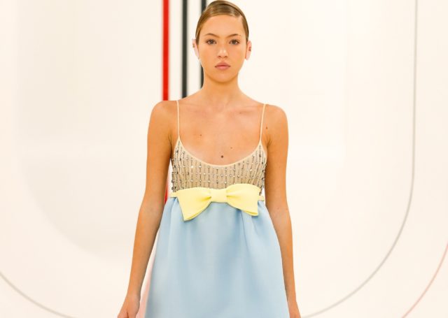 Дочь Кейт Мосс в голубом мини на показе Miu Miu