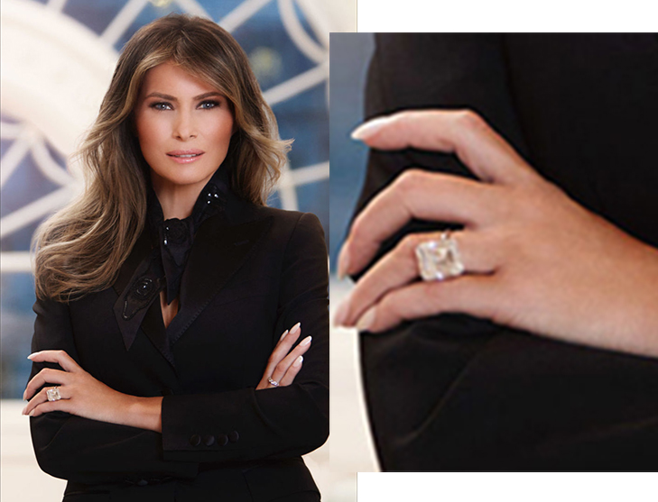 Но это еще не все: недавно на сайте Белого дома наконец-то появился официальный портрет первой леди. И все бы ничего, но на нем Мелания (46) как будто нарочно демонстрирует обручальное кольцо за $3 млн. Это, естественно, понравилось не всем – 80% населения Америки не смогут заработать на такую безделушку за всю жизнь. Правда, Мелании сделали небольшую скидку – она все-таки жена миллиардера.