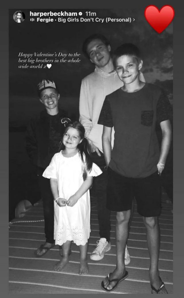 Единственная дочь Дэвида и Виктории Бекхэмов привлекла внимание поклонников трогательным постом в соцсетях, приуроченным ко Дню святого Валентина. Кажется, несмотря на конфликт, ее любовь к братьям непоколебима.