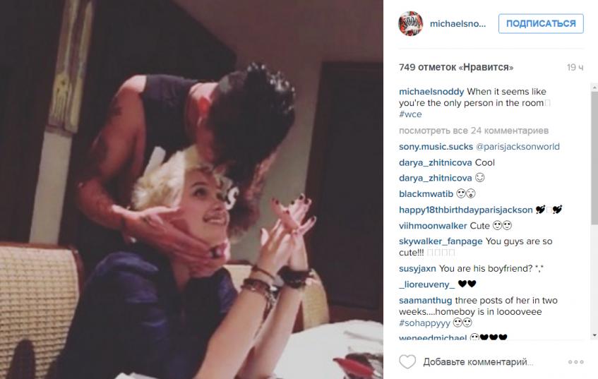 Как оказалось, им стал 26-летний барабанщик и основатель малоизвестной рок-группы Street Drum Corps Майкл Снуди, живущий в Лос-Анджелесе недалеко от Пэрис. О том, что его связывают отношения с наследницей короля поп-сцены, стало известно благодаря Instagram, в котором молодой человек частенько публикует фотографии с красавицей.