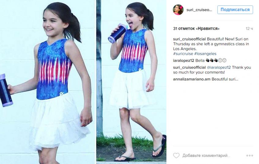 Не так давно в СМИ появились слухи о том, что дочка Тома Круза (53) и Кэти Холмс (37) — Сури Круз (10) — уже более 1000 дней не разговаривала со своим отцом. Но, похоже, это не сильно беспокоит маленькую красавицу.